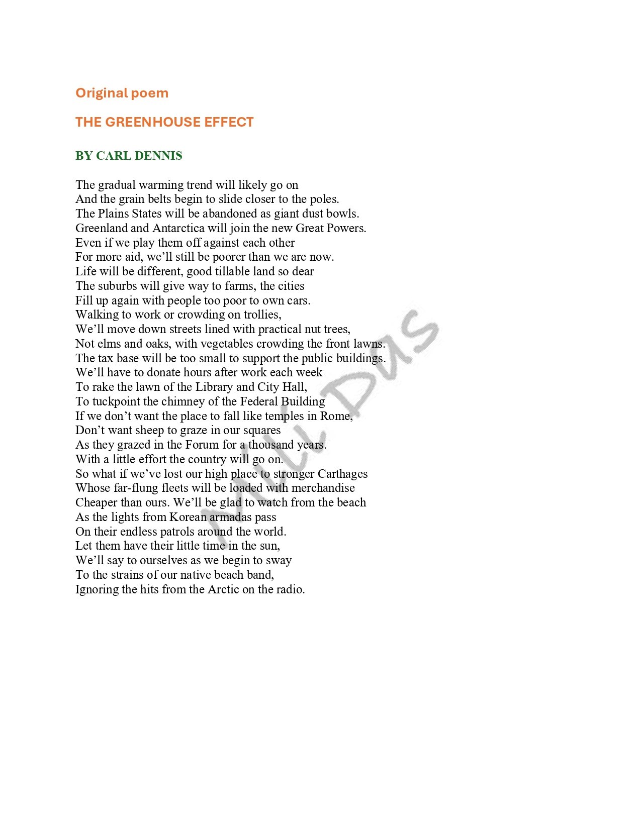 The Greenhouse Effect' by Carl Dennis