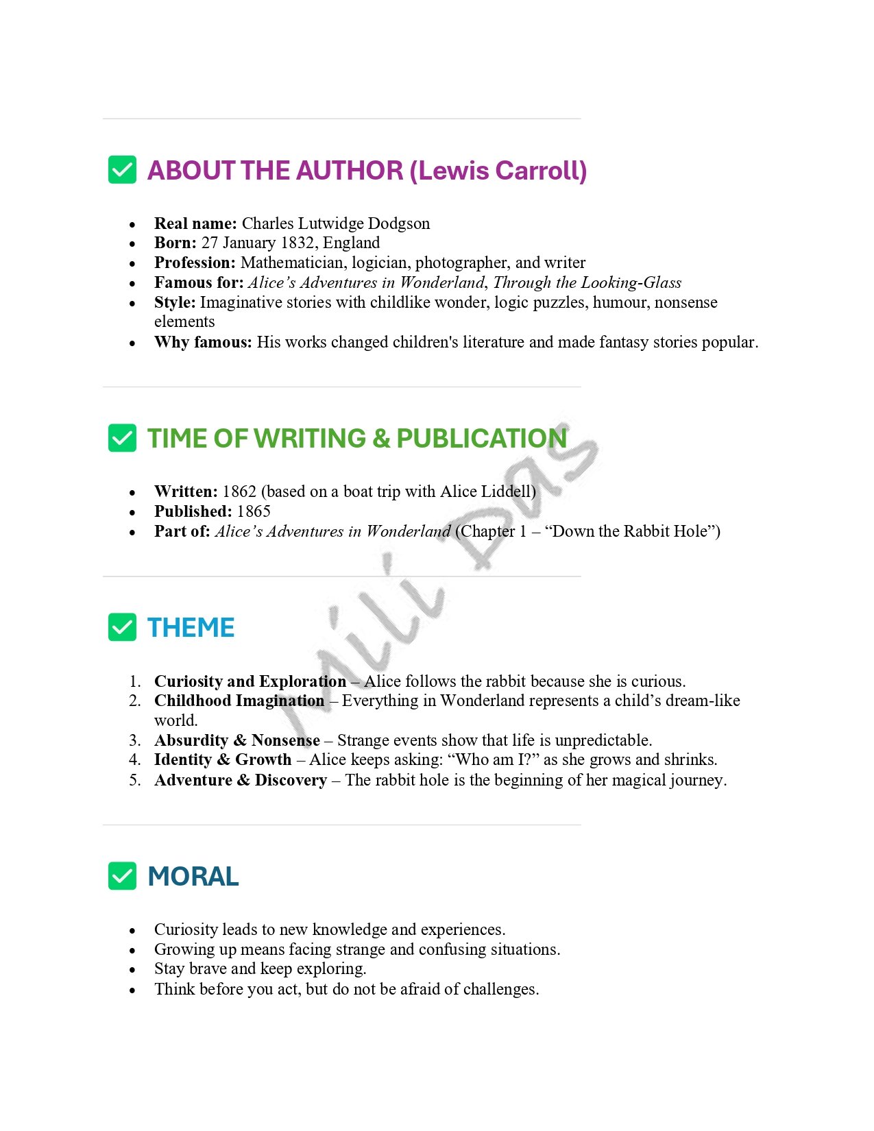Alice in Wonderland - Down the Rabbit Hole' by Lewis Caroll