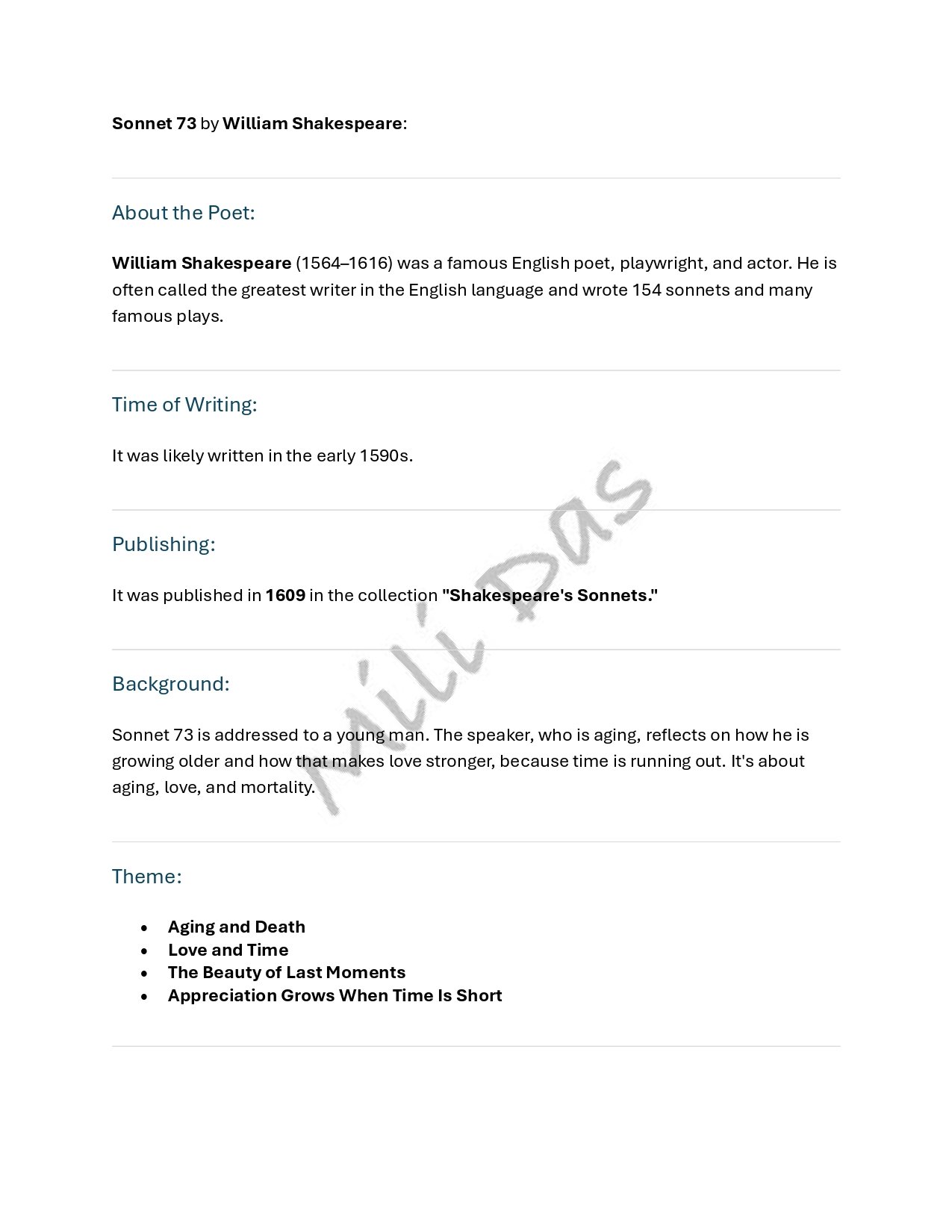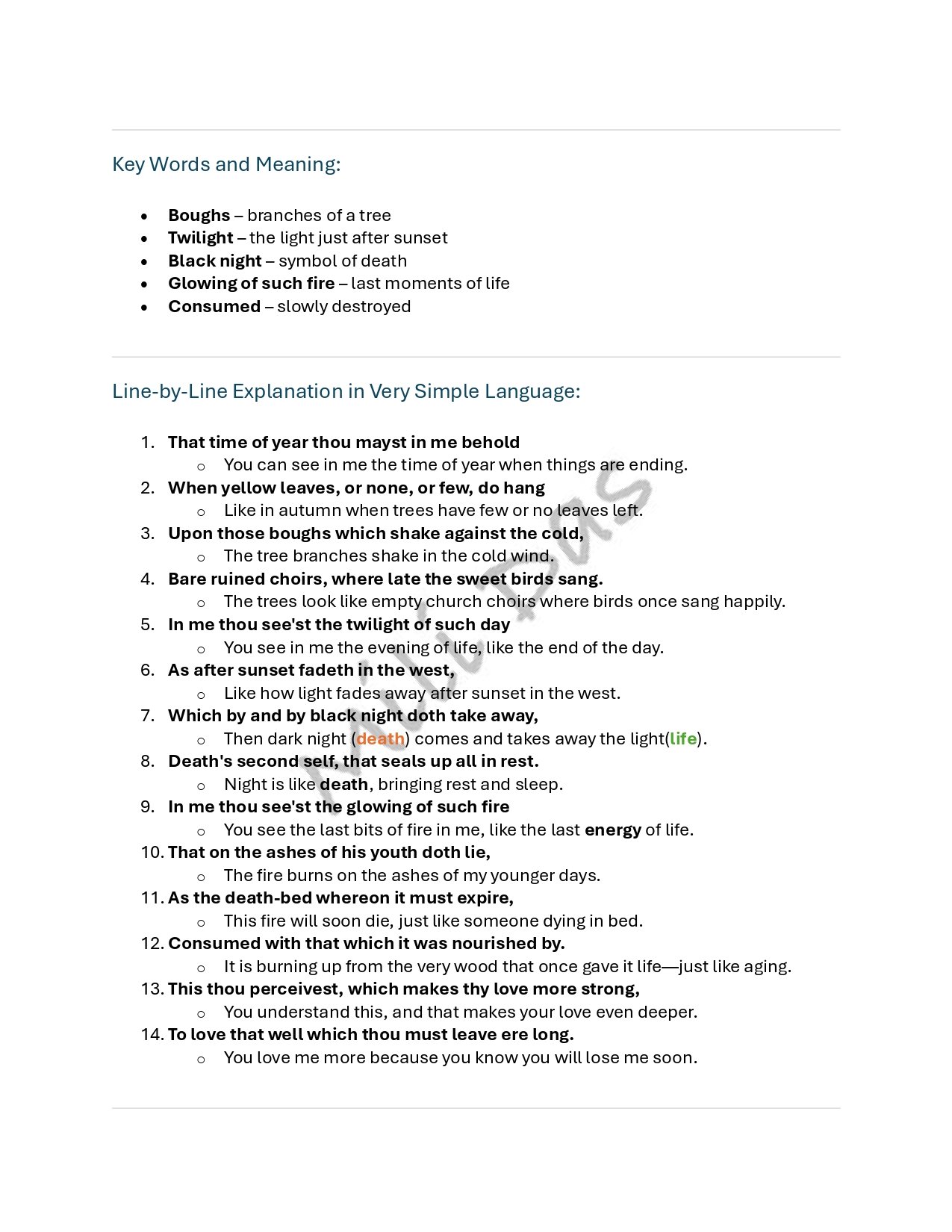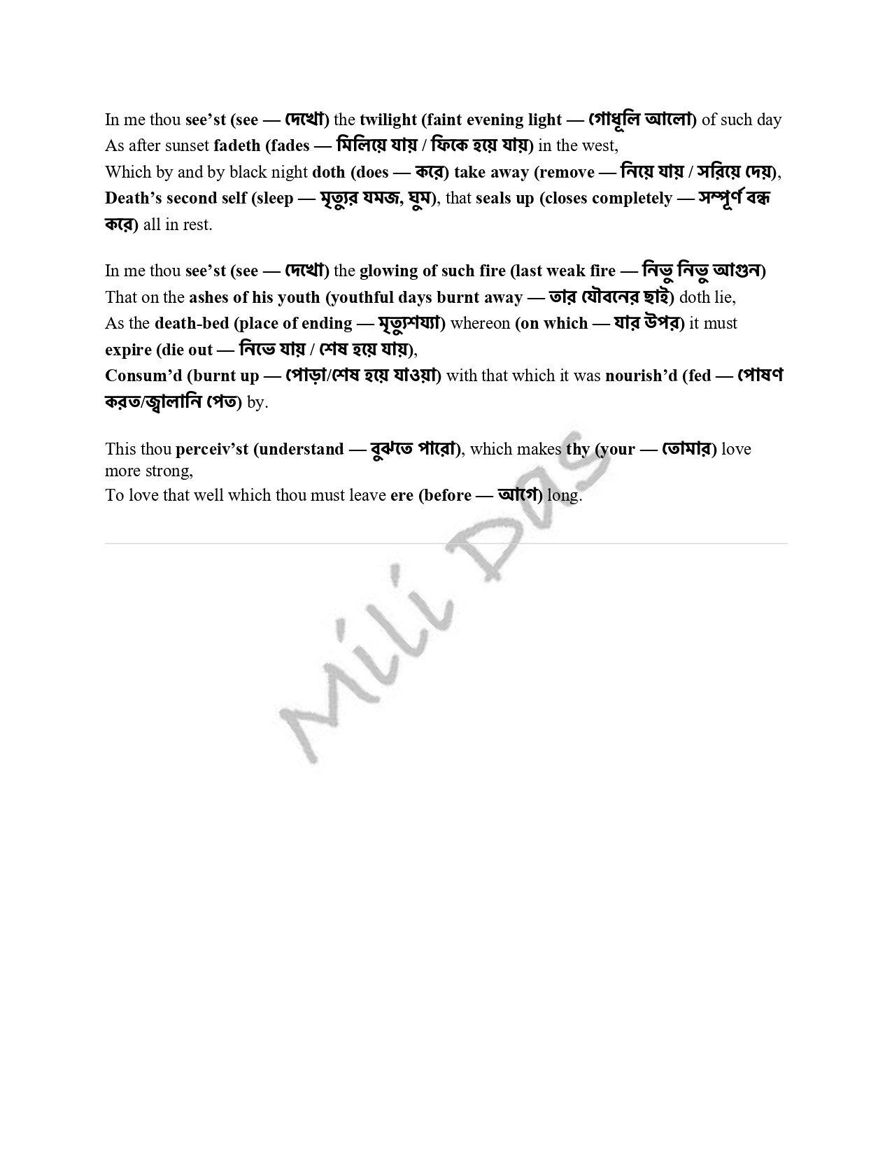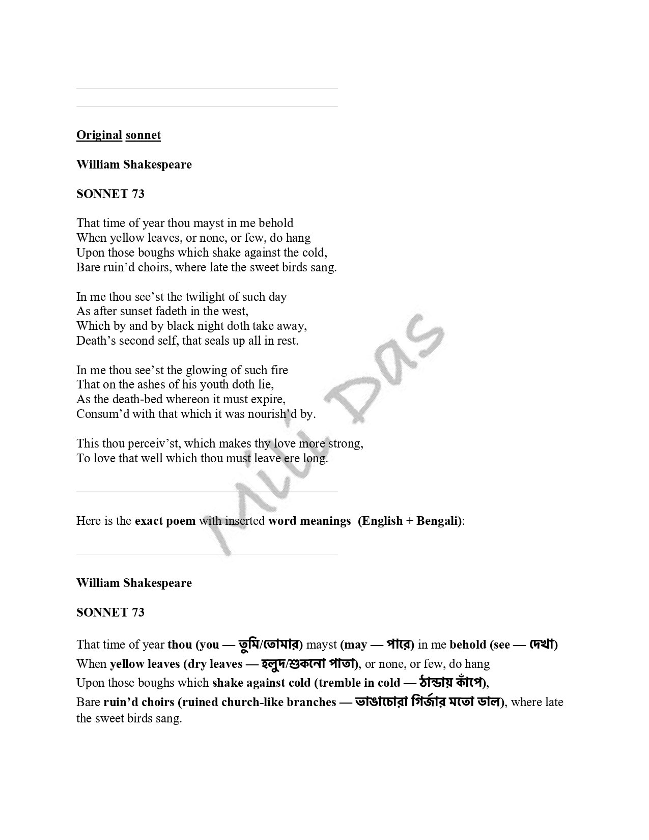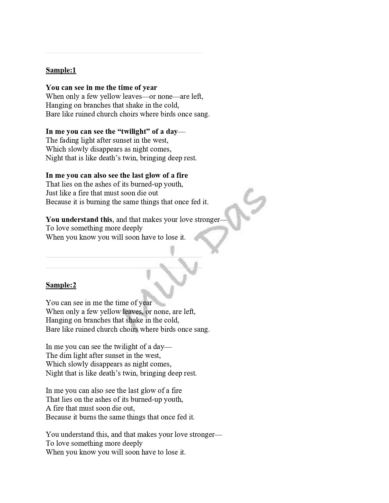 That time of year ....' - Sonnet 73 by William Shakespeare