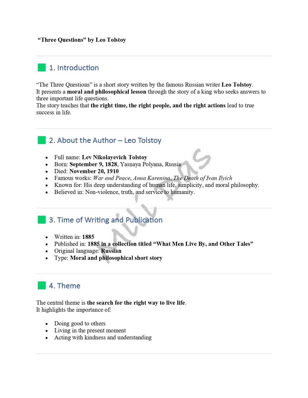 Three Questions' by Leo Tolstoy